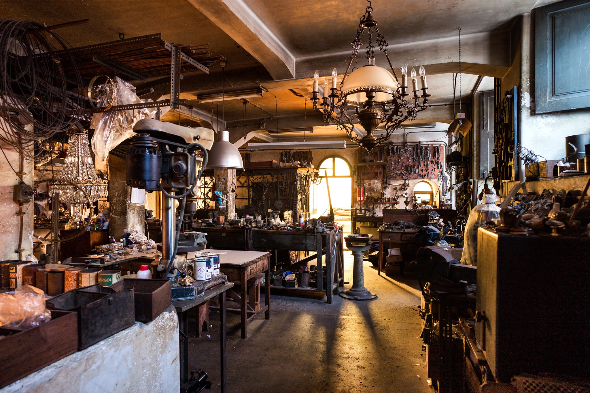 From the Casa Achilles workshops, contiguous to the beautiful shop, there are not only locks and hinges, but also wall lights and chandeliers, and components for antique furniture, among other curiosities, waiting for you.