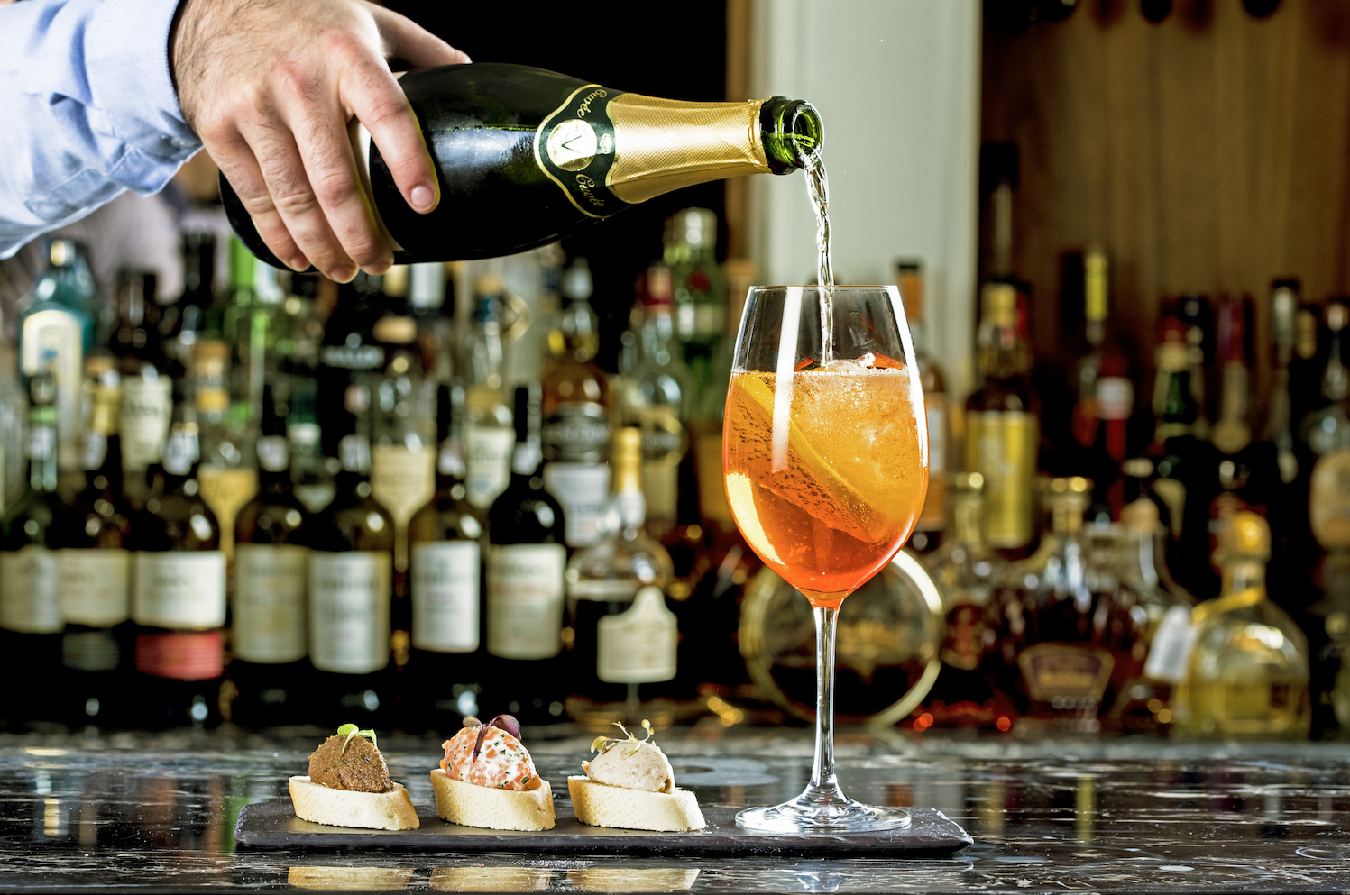 The Aperitivo, the Appetizer, served with three amuse-bouche, on the house.